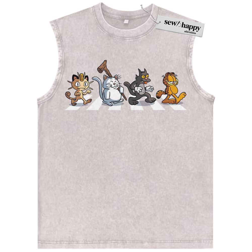 Wash Tank Top Cartoon Cats Tank Top, Anime Graphic Tee, Comfort Colors Tank Top