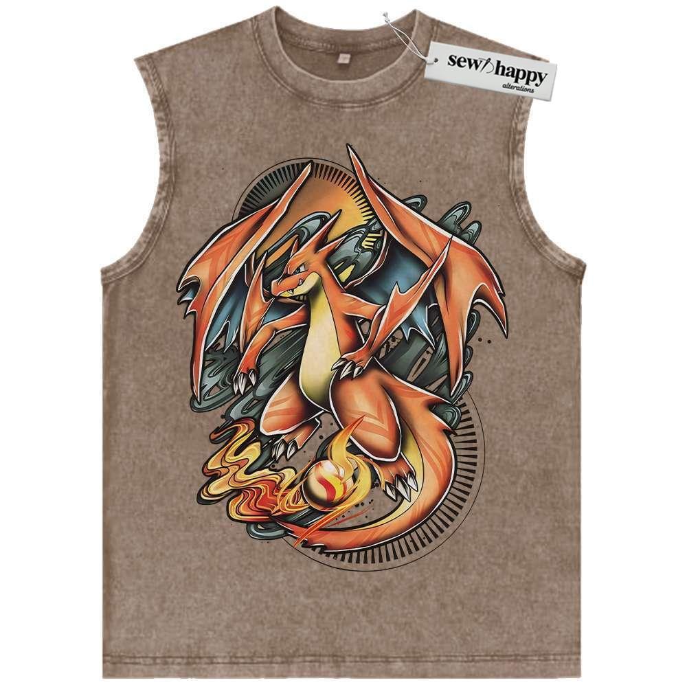 Wash Tank Top Charizard Tank Top, Pokemon Tank Top, nime Tank Top, Vintage Tank Top