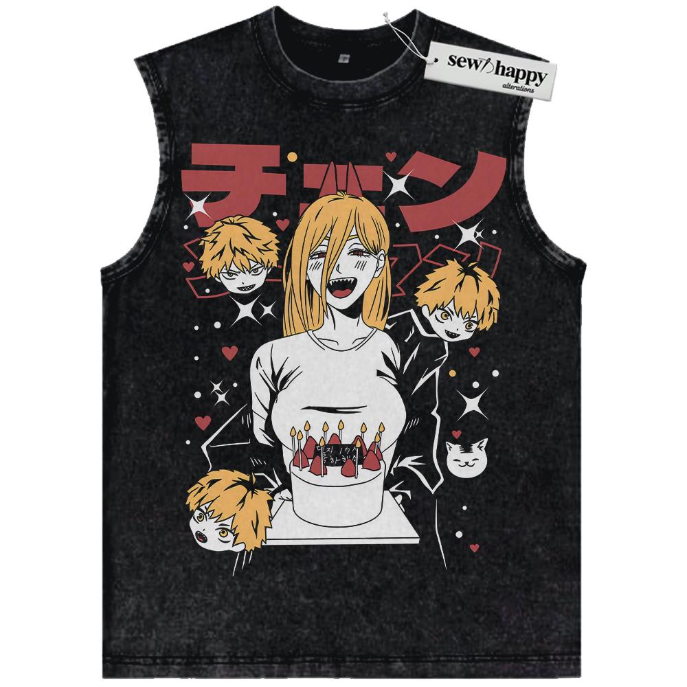 Wash Tank Top Denji Tank Top, Power Tank Top, Chainsaw Man Tank Top, Anime Tank Top, Vintage Tank Top