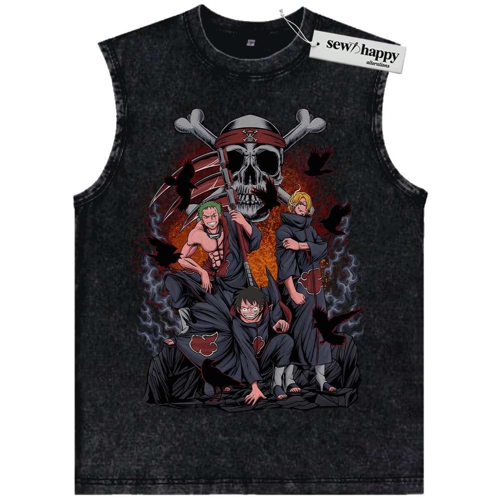 Wash Tank Top Akatsuki x One Piece Tank Top, Anime Tank Top, Vintage Tank Top
